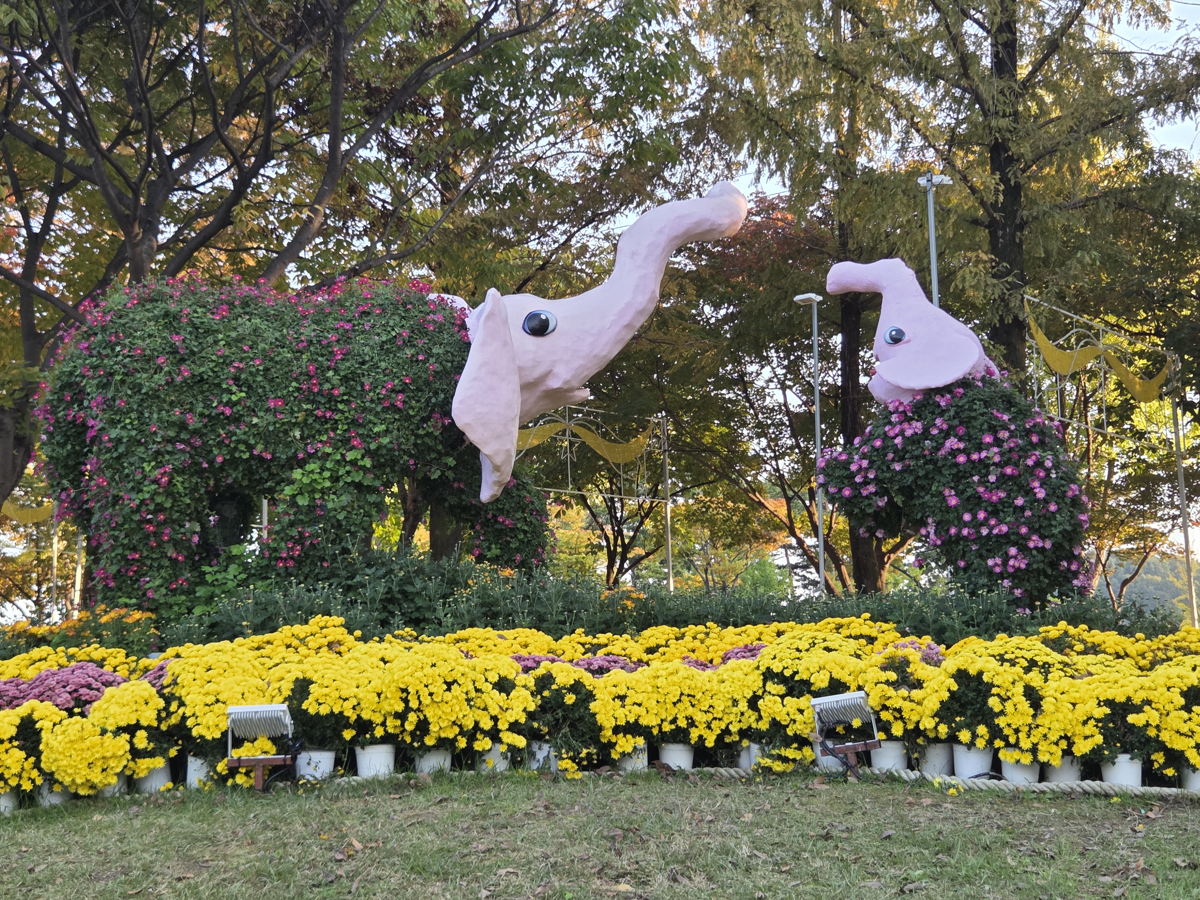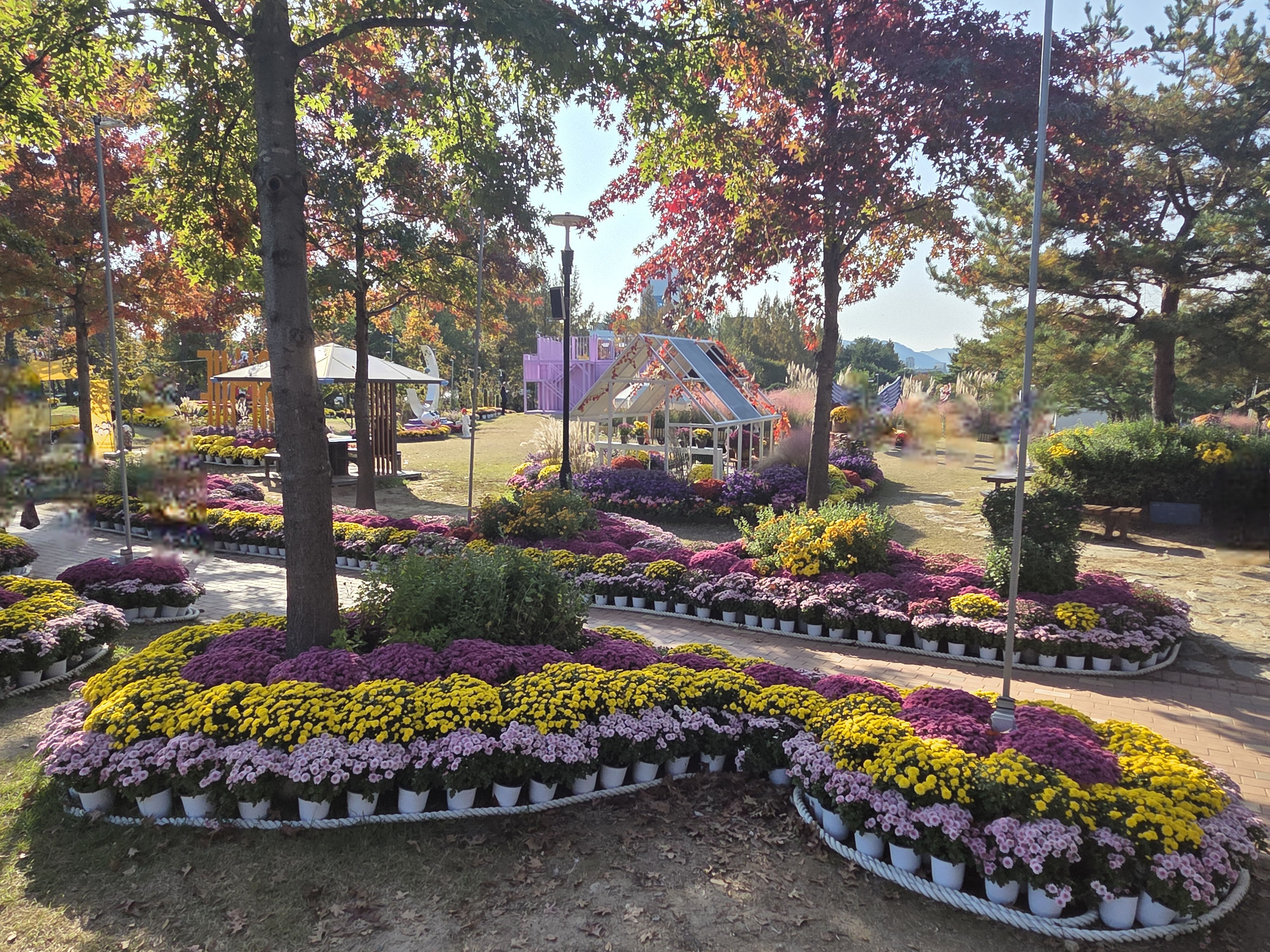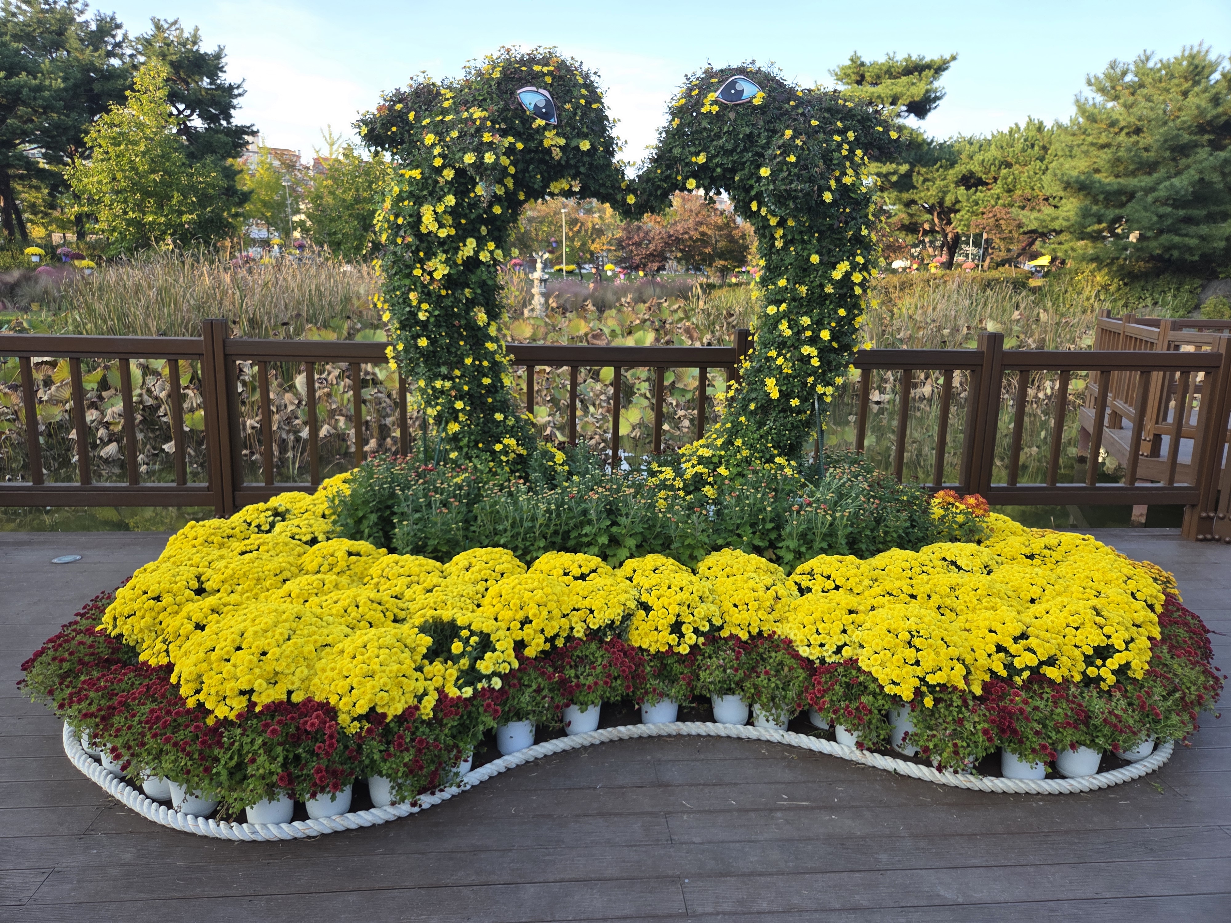 유림공원은 대전시 유성구 어은동에 있는 공원으로 유성구청 앞 갑천과 유성천 부근에 위치해 있습니다. 유림공원은 계룡건설 이인구 명예 회장의 희수 기념 사회환원사업 100억 원으로 만들어졌고 2년의 기간 동안 조성되었으며 명예회장의 아호인 '유림'을 따서 지어졌으며 2009년 6월 28일 개장했습니다. 유림공원 국화향기 가을 축제는 2012년에 처음 성공적으로 개최되어 해마다 규모가 확대되어 3천만 송이가 넘는 국화가 전시되고 있다고 합니다. 공원 내에는 문학마을도서관 , 연못 반도지 등이 위치해 있고 매년 유성 국화 축제를 개최하고 있습니다. 제가 방문했을 때에는 수 천 송이의 국화가 아직 꽃망울을 맺고 있었는데 이 꽃망울이 피어나면 더욱더 아름다울 것 같습니다. 공원에는 어린이들이 좋아할 만한 귀여운 동물 캐릭터들도 있고 알록달록 예쁜 조각들을 아기자기하게 꾸며 놓았으며 그네와 벤치도 곳곳에 있어 대전 시민들이 가족단위로 많이 찾고 있는 공원입니다.