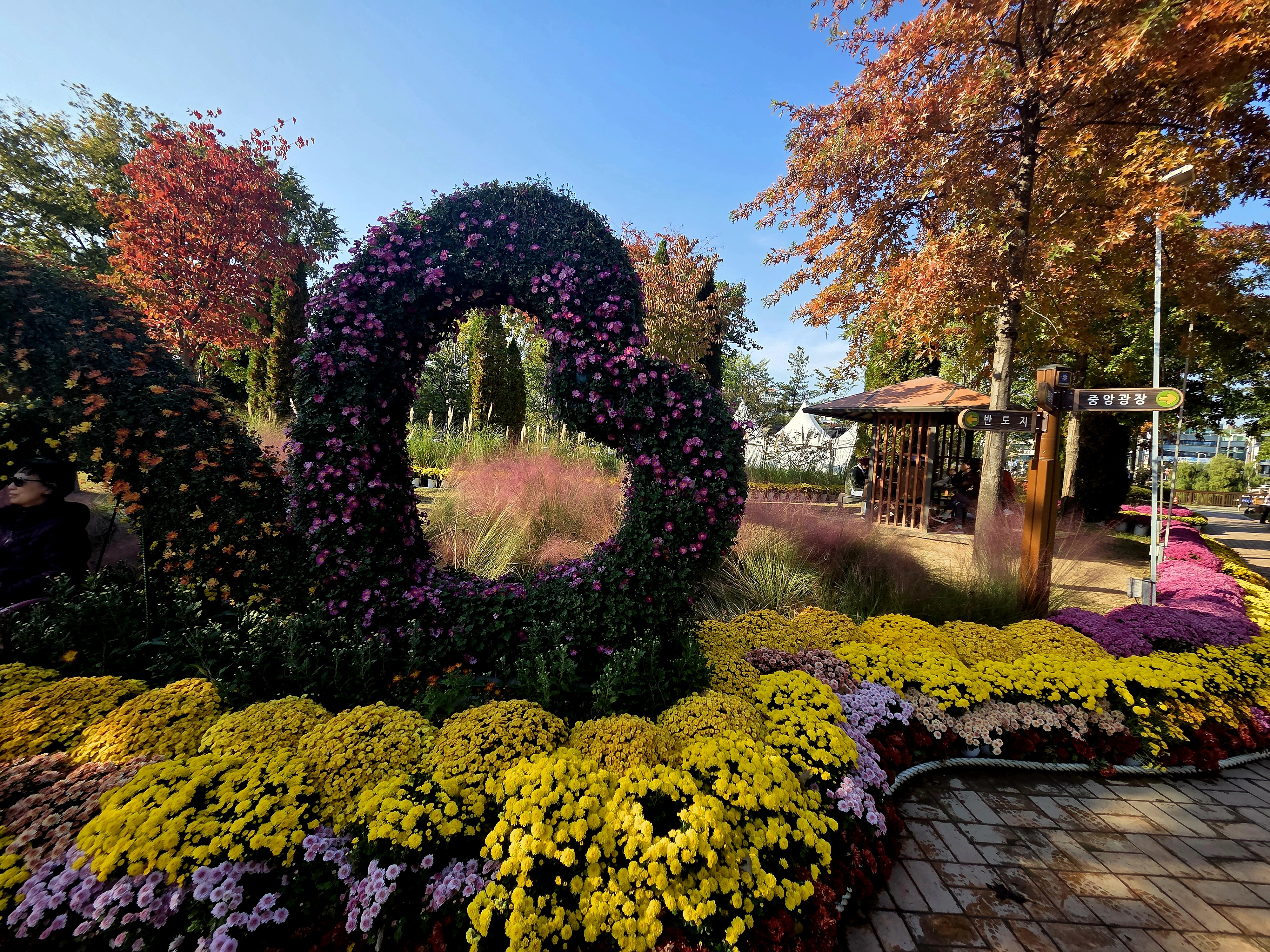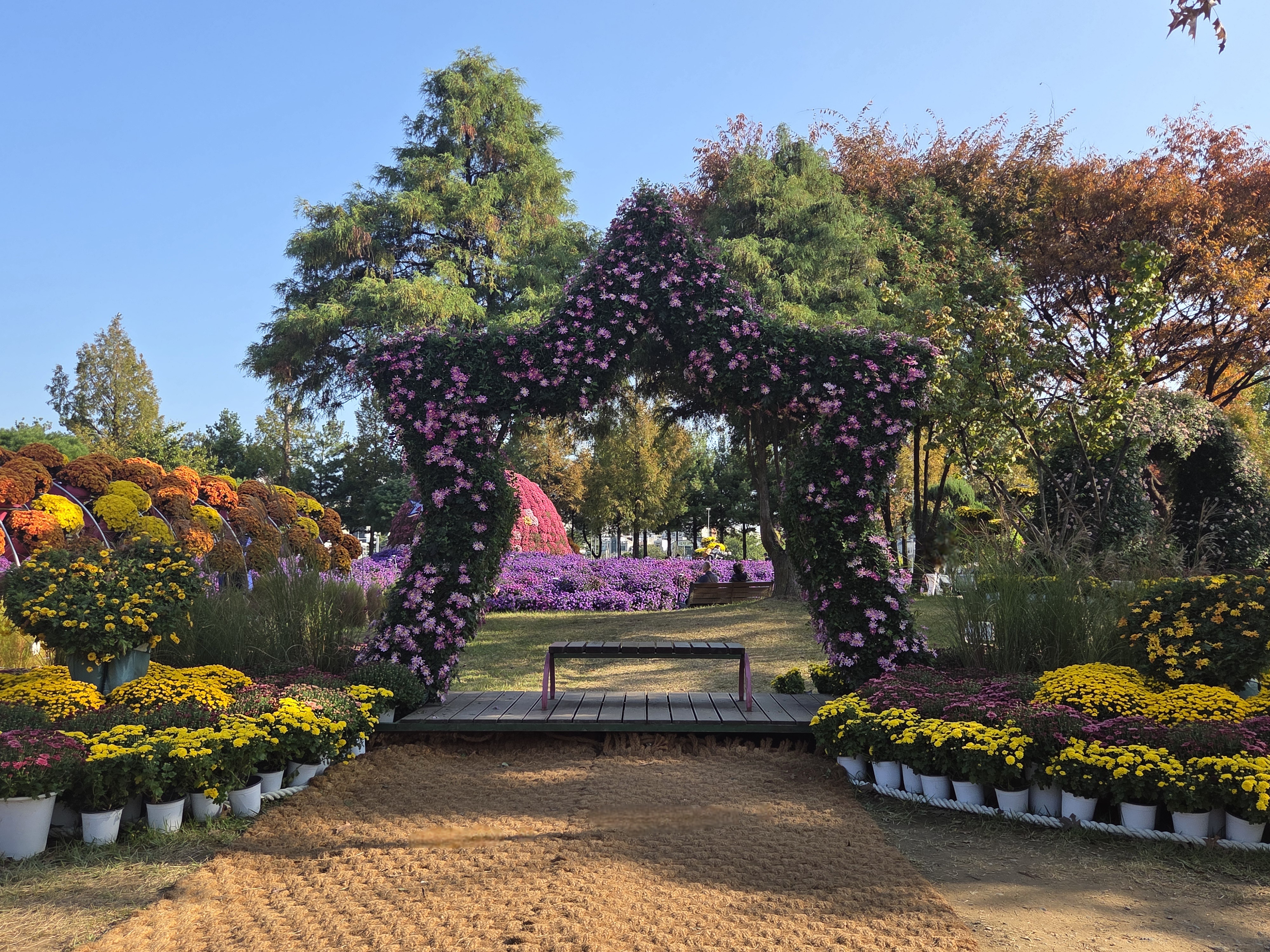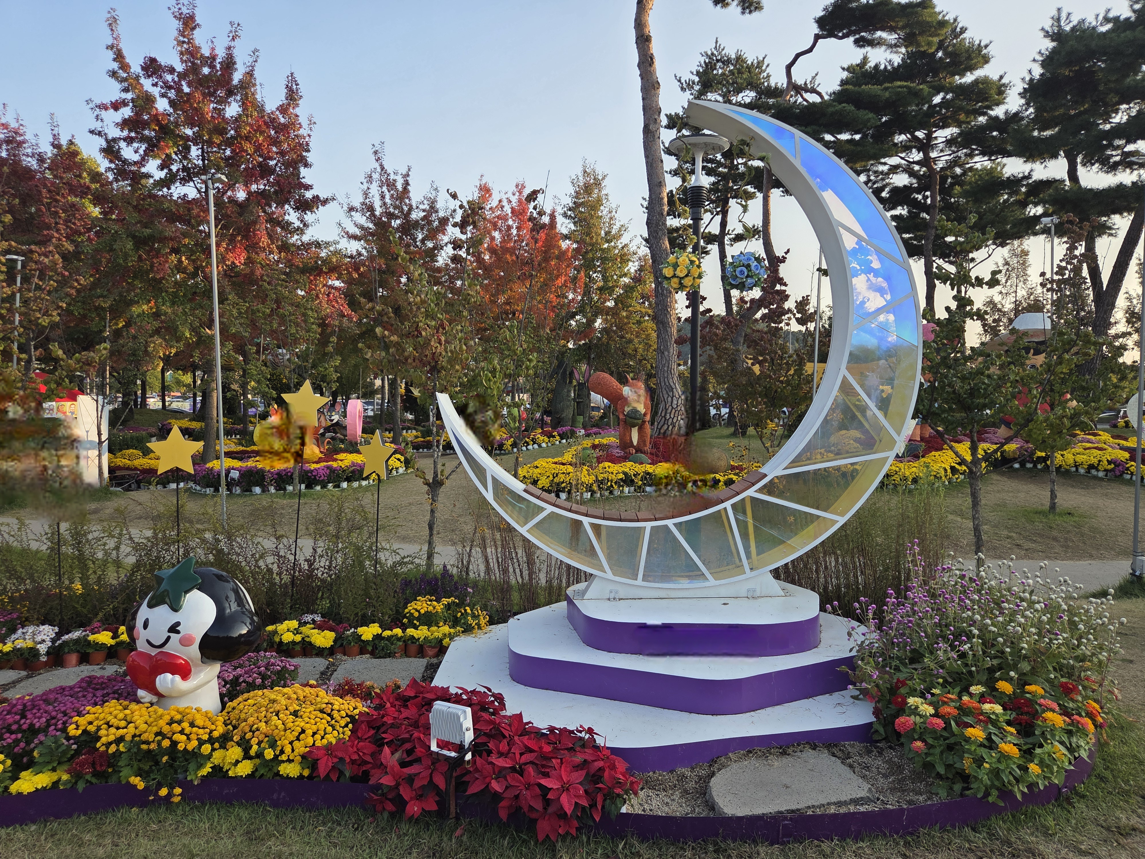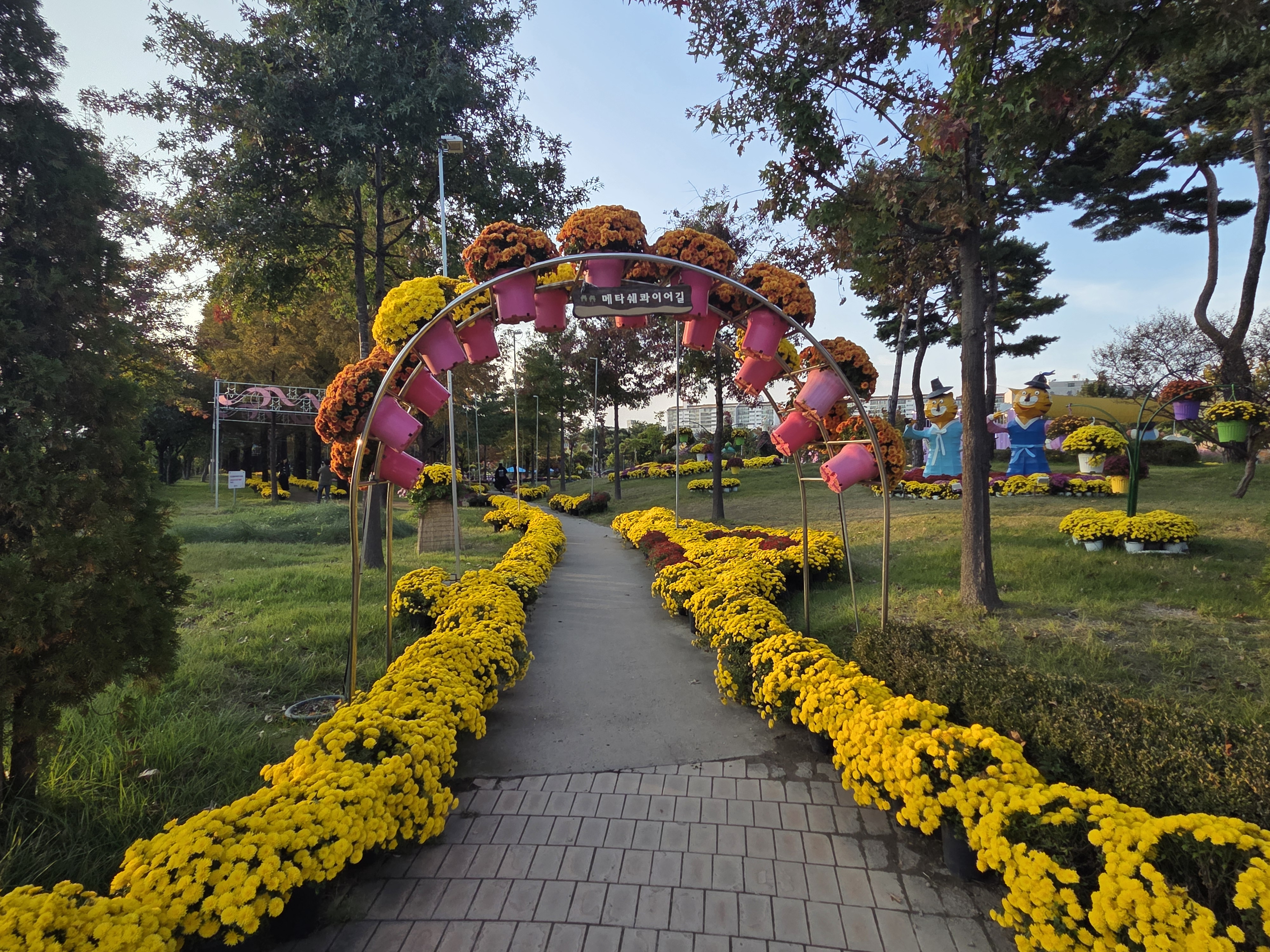 유림공원은 대전시 유성구 어은동에 있는 공원으로 유성구청 앞 갑천과 유성천 부근에 위치해 있습니다. 유림공원은 계룡건설 이인구 명예 회장의 희수 기념 사회환원사업 100억 원으로 만들어졌고 2년의 기간 동안 조성되었으며 명예회장의 아호인 '유림'을 따서 지어졌으며 2009년 6월 28일 개장했습니다. 유림공원 국화향기 가을 축제는 2012년에 처음 성공적으로 개최되어 해마다 규모가 확대되어 3천만 송이가 넘는 국화가 전시되고 있다고 합니다. 공원 내에는 문학마을도서관 , 연못 반도지 등이 위치해 있고 매년 유성 국화 축제를 개최하고 있습니다. 제가 방문했을 때에는 수 천 송이의 국화가 아직 꽃망울을 맺고 있었는데 이 꽃망울이 피어나면 더욱더 아름다울 것 같습니다. 공원에는 어린이들이 좋아할 만한 귀여운 동물 캐릭터들도 있고 알록달록 예쁜 조각들을 아기자기하게 꾸며 놓았으며 그네와 벤치도 곳곳에 있어 대전 시민들이 가족단위로 많이 찾고 있는 공원입니다.