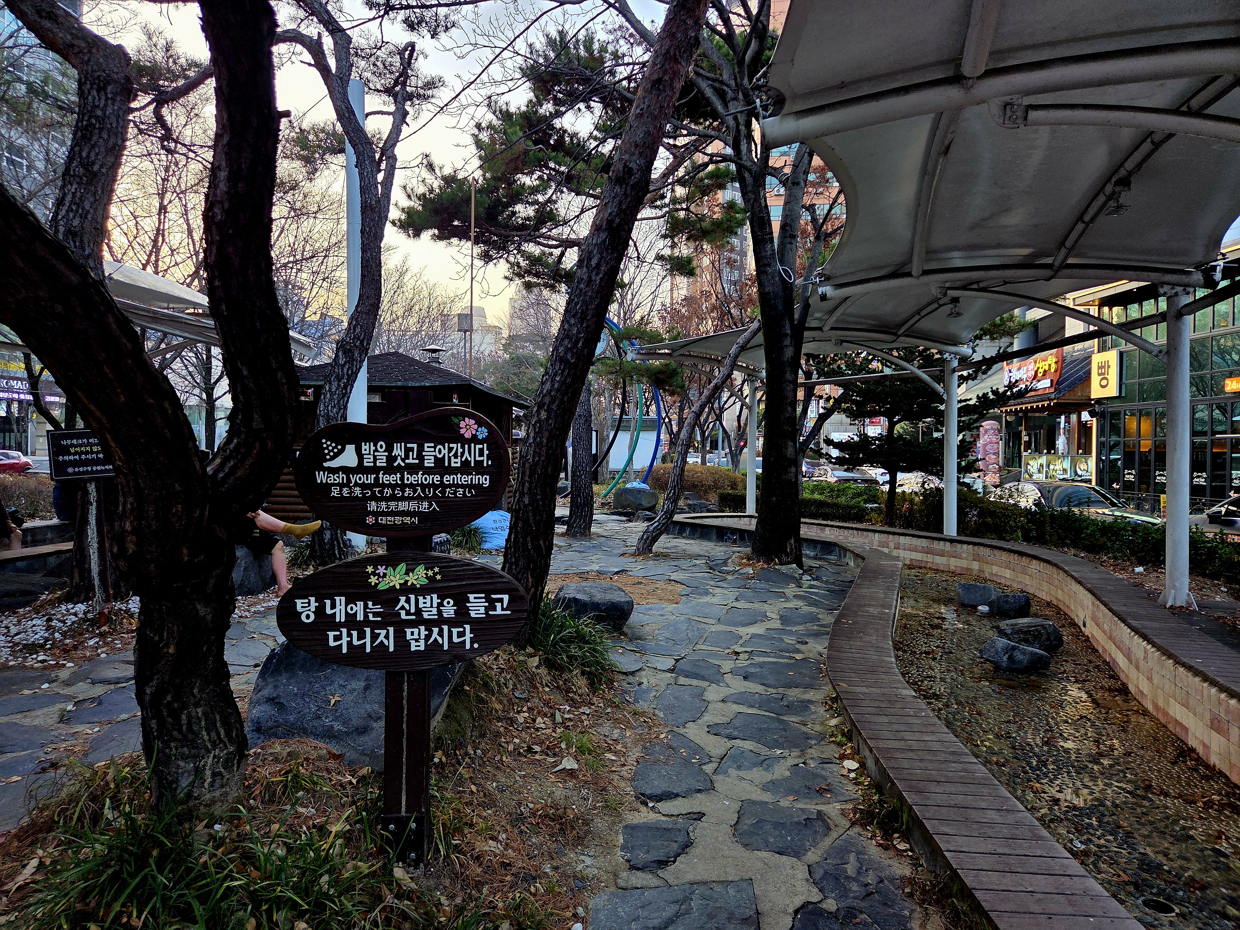 유성온천공원 족욕체험장은 유성온천역 7번출구에서 5분 정도 걸으면 찾아올 수 있습니다. 그리고 자차로 이동하신 분은 계룡스파텔 근처 공영주차장에 주차할 수 있습니다.